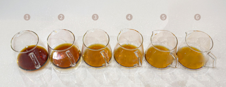 第1、2段決定這支豆子的個性,第3段拉出韻味,第4段完成平衡,第5段開始稀釋亮點,第6段則可能把微澀與收斂感帶進杯中。