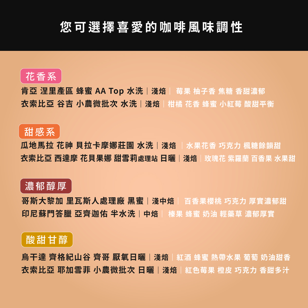 The flavors of coffee are derived from the breakdown of various nutrients in the green coffee beans during roasting. Heat causes these compounds to degrade into a variety of aromatic molecular structures, resulting in a wide spectrum of flavors. High-quality coffee beans naturally possess a rich aroma that evolves at different temperatures—high, medium, and low—offering a delightful and nuanced experience worth savoring.