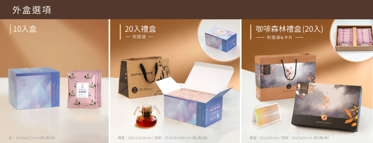 ※ Coffee Forest Gift Box & 20-Pack Gift Box include a gift bag (For the 10-pack box, a gift bag is available for additional purchase).