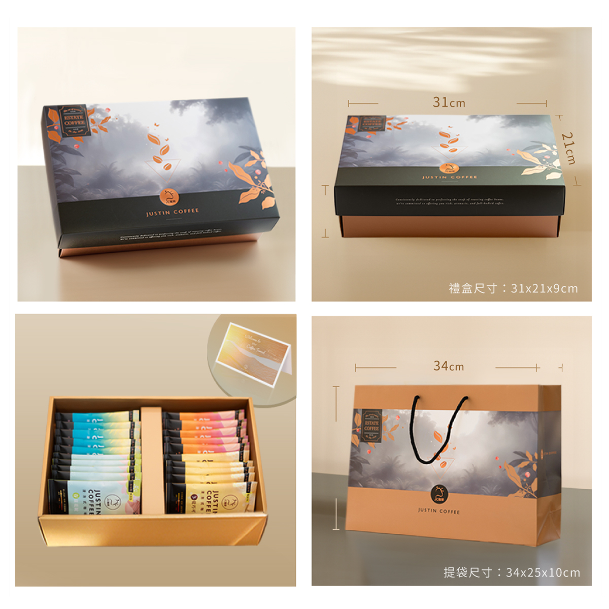 此品項含 : 職人浸泡咖啡 x 20入 + 燙金禮盒 + 精美提袋 + 典雅卡片