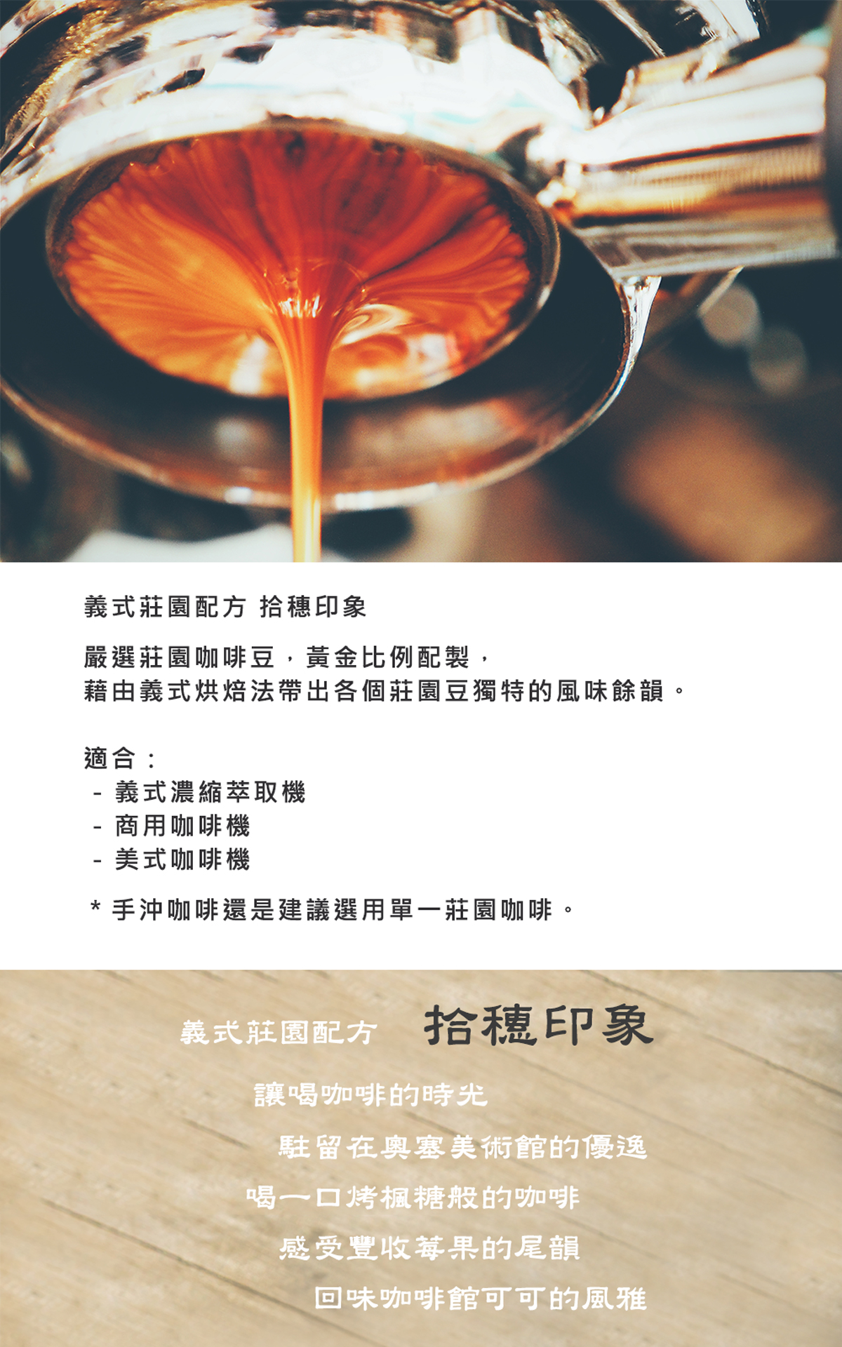 堅持採用100%阿拉比卡種(Arabica,風味優雅,是精品咖啡) 製作義式莊園配方,